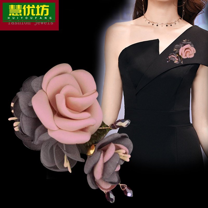 韩版胸针女百搭大气别针装饰可爱胸花布艺花朵高档奢华气质配饰品热门设计联盟服务商